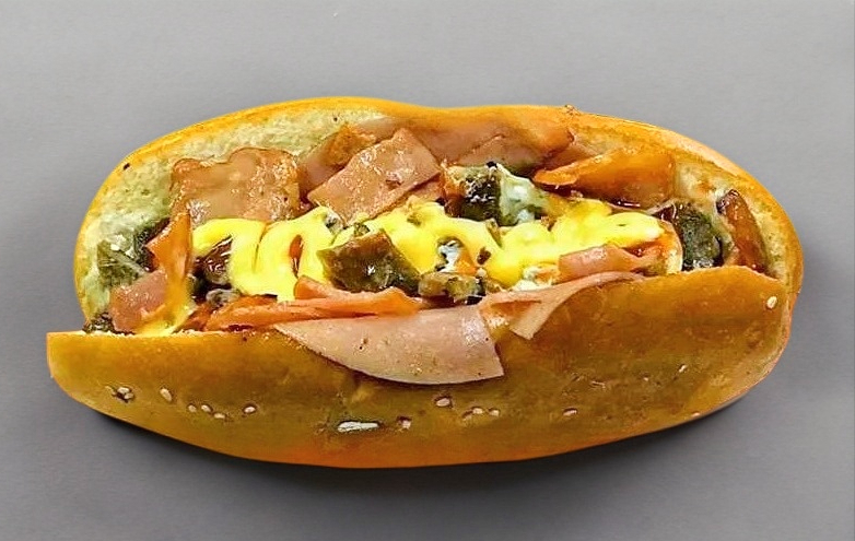 Salchicha, quesillo, chorizo, cheddar, tomate y cebolla, incluye aderezo de mayonesa y cátsup.