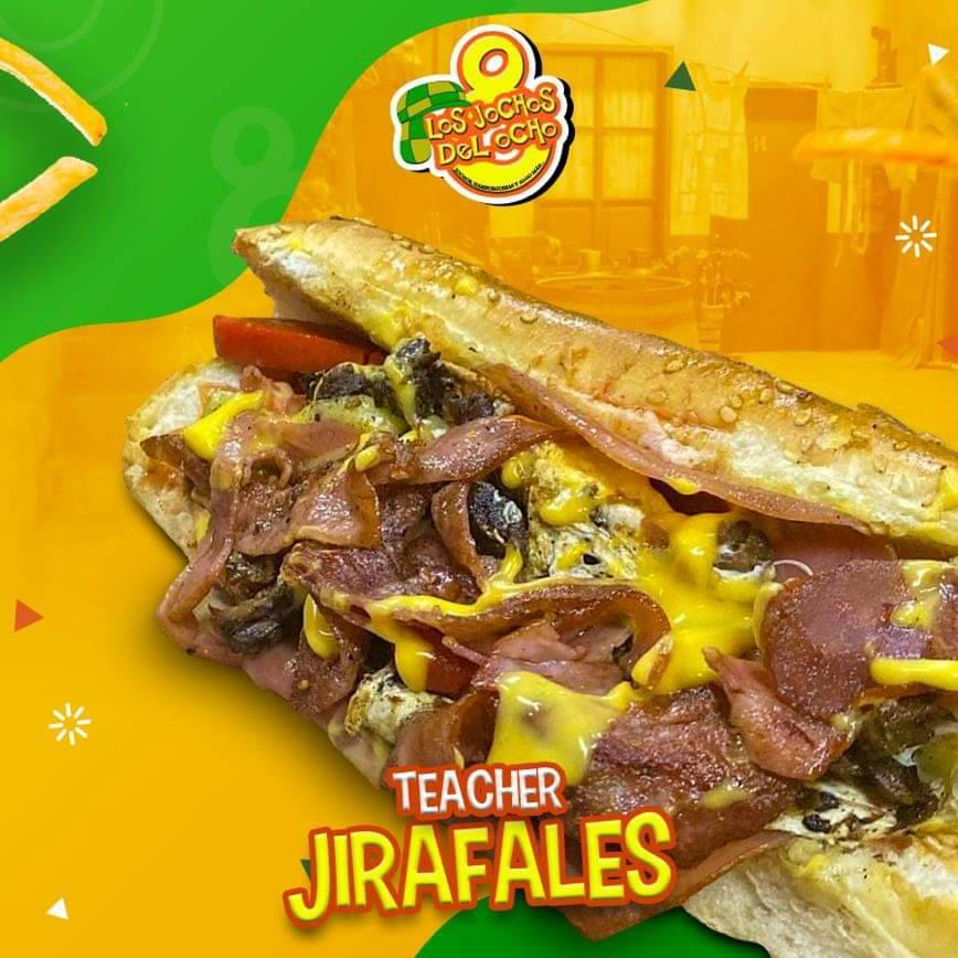 Carne, queso amarillo, jamón, cheddar, tocino, quesillo, chorizo, lechuga, tomate y cebolla, incluye aderezo de mayonesa y cátsup.