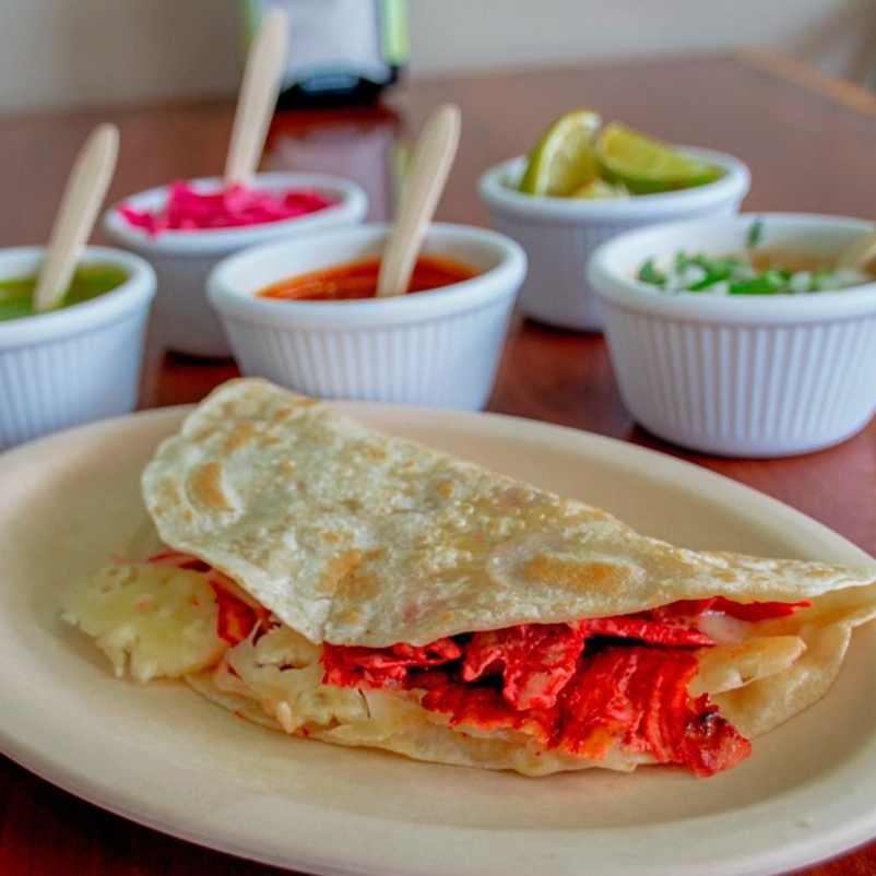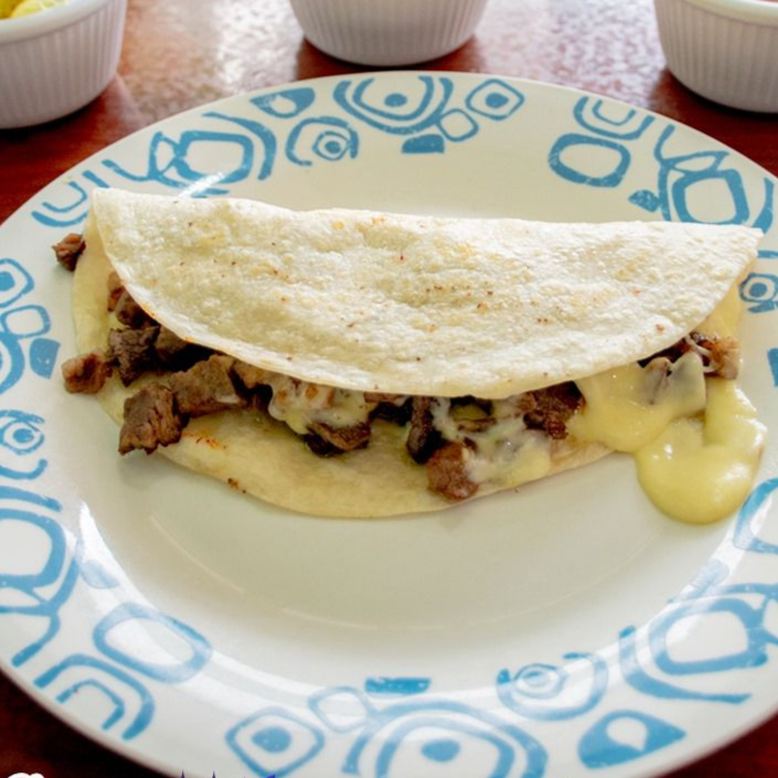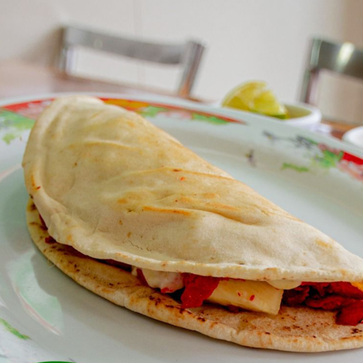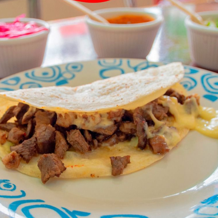 chorizo al pastor chuleta queso fundido con tortilla de harina