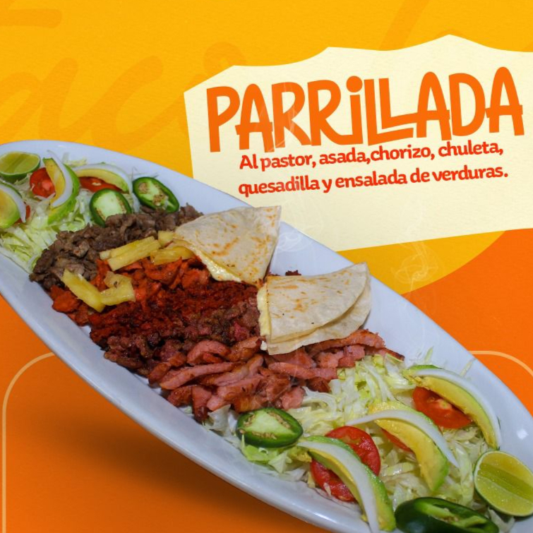 Al pastor asada chorizo chuleta y ensalada de verduras
