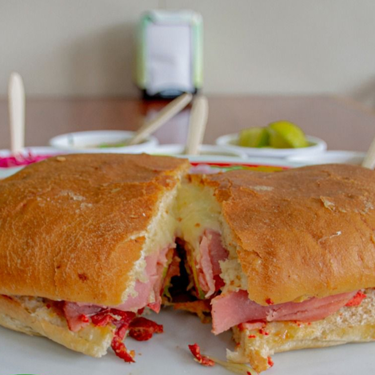 al pastor jamon queso lechuga jitomate cebolla catsup y mayonesa