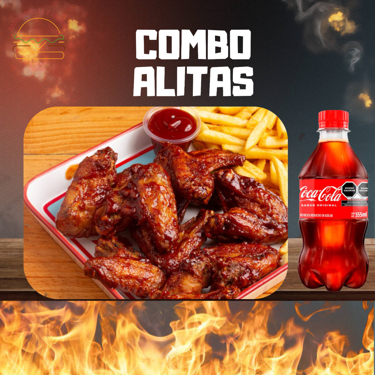 Alitas BBQ 5 Pzas*1 + Coca Cola Original 355 ml*1 + Papas a La Francesa Sencillas*1