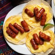 Tortilla de maiz con chistorra, acompañado de salsa cebolla y cilantro