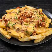 orden de papas bañadas en queso derretido, trozos de tocino y polvo lemon pepper