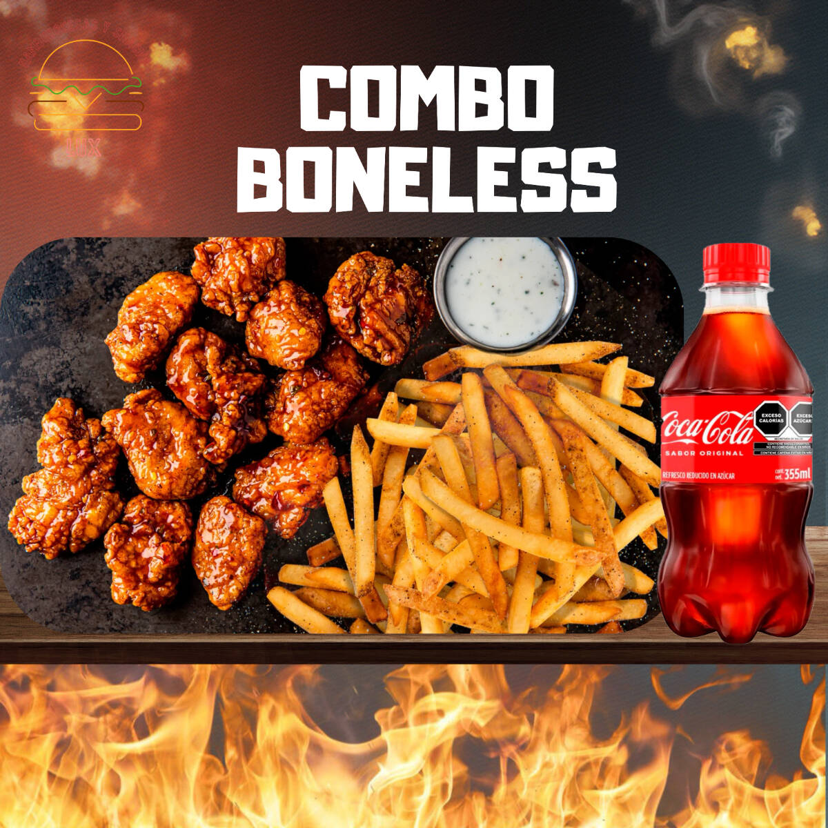 Boneless 6 Piezas Mango Habanero*1 + Coca Cola Original 355 ml*1 + Papas a La Francesa Sencillas*1
