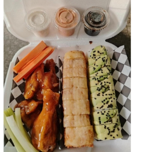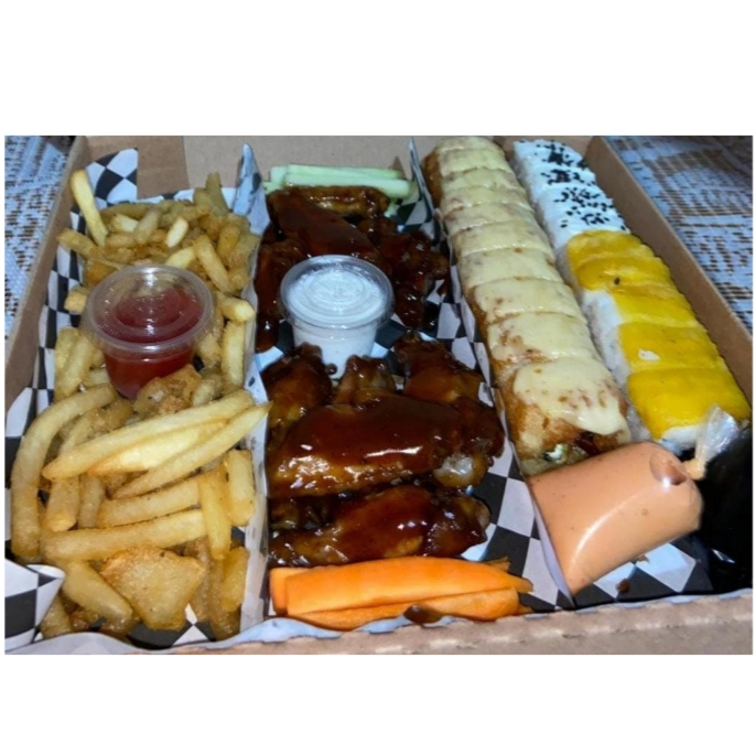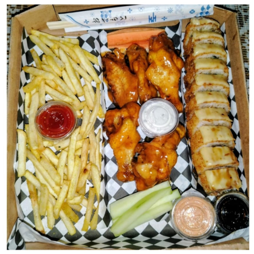 10 PIEZAS DE MAKIS + MEDIA ORDEN DE ALITAS + PAPAS A LA FRANCESA