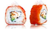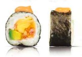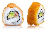 Orden de 10 pzas, camarón y aguacate, por fuera surimi, Philadelphia y empanizado, encima salsa tampico.
