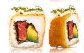 Orden de 10 pzas, por dentro atún sellado, aguacate por fuera empanizado salseado con mayonesa japonesa, cebollín y ajonjolí.
