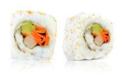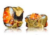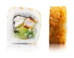 Orden de 10 pzas, por dentro camarón empanizado, pepino y aderezo tampico, por fuera aguacate con anguila.