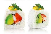 Orden de 10 pzas, aguacate, pepino, zanahoria y camarón por dentro, Philadelphia y ajonjolí por fuera.