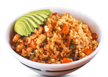 Arroz frito, huevo, cebolla, zanahoria, calabacín y salsa de soya, acompáñalo con tu aderezo favorito.
