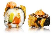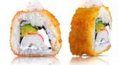 Orden de 10 pzas, crujiente delicia, camarón, aguacate y Philadelphia con cubierta empanizada, bañado en salsa de anguila.