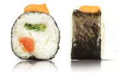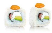 Orden de 10 pzas, delicioso salmón ahumado, Philadelphia y aguacate, envuelto con alga, cubierto con salsa de anguila.