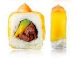 Orden de 10 pzas, porque pensamos en ti, filete de res, aguacate, Philadelphia, cubierto con salsa de anguila y aderezo de chipotle.