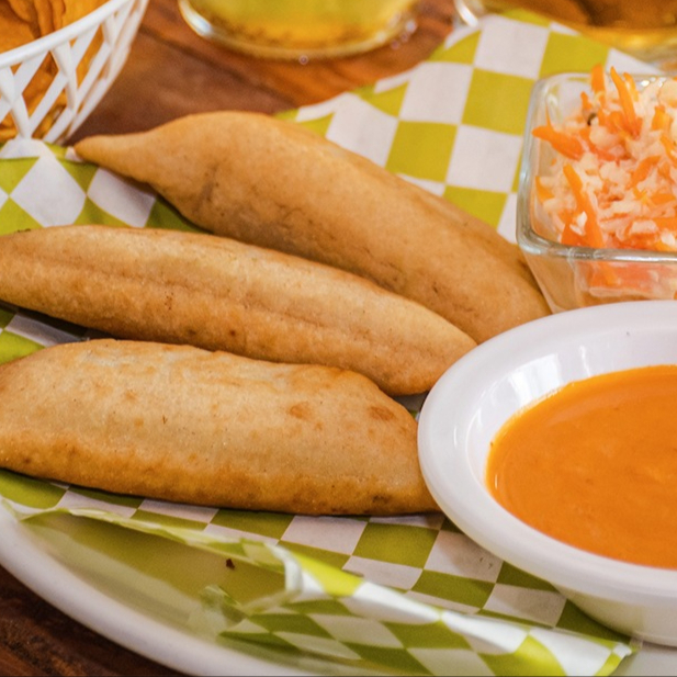 Orden de 3 piezas de empanadas de mariscos con quesillo.