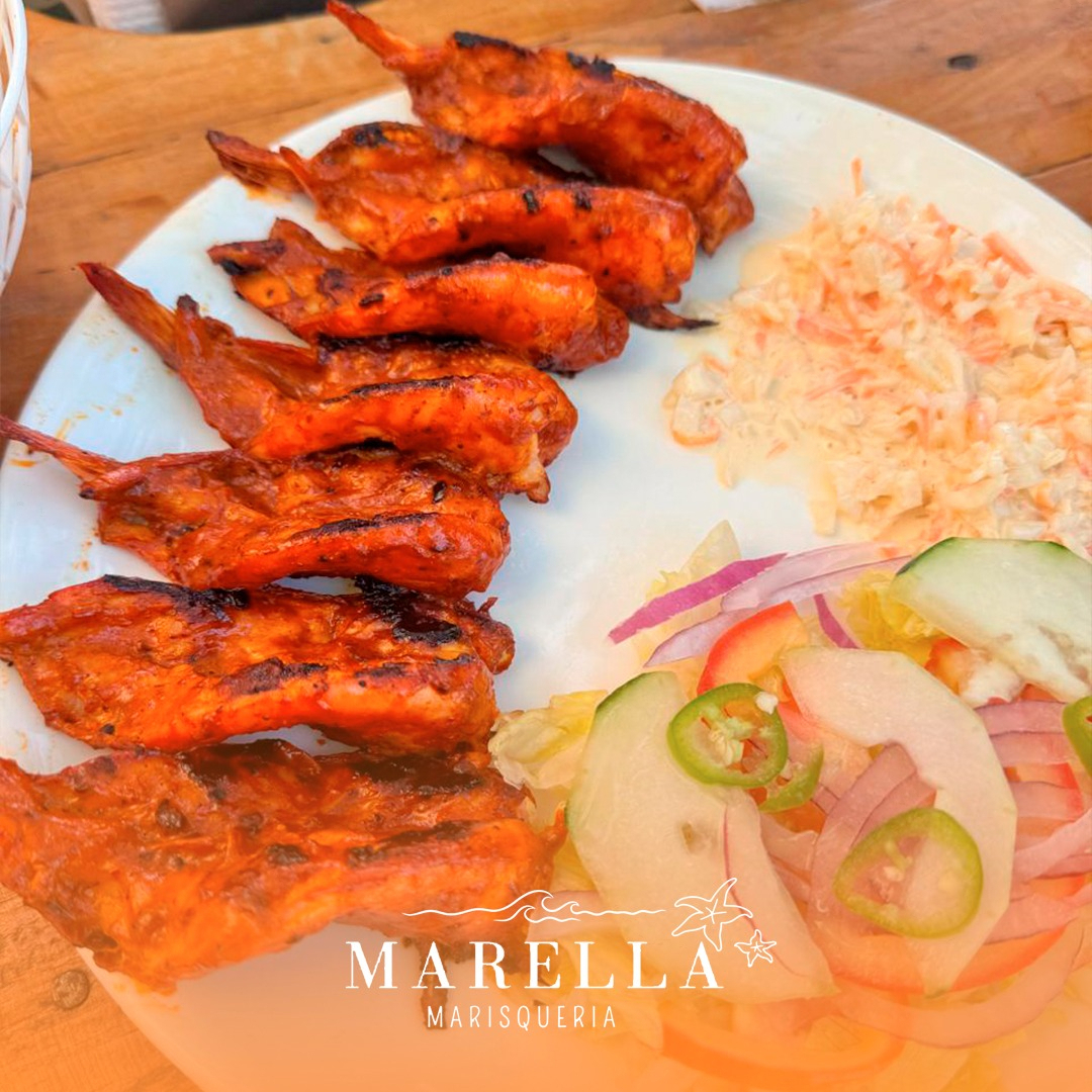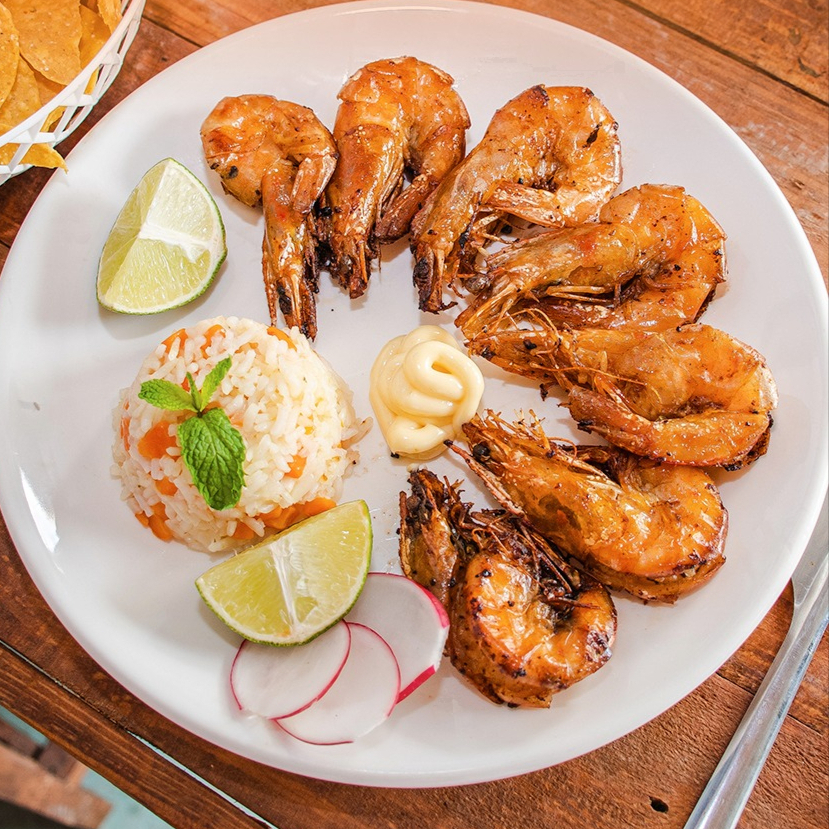 Porción individual de camarones frescos preparados al mojo de ajo.