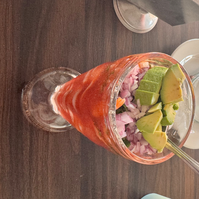 Deliciosa preparación de tomate, cebolla, cilantro y camarón, bañada con nuestra mezcla de salsas y limón.