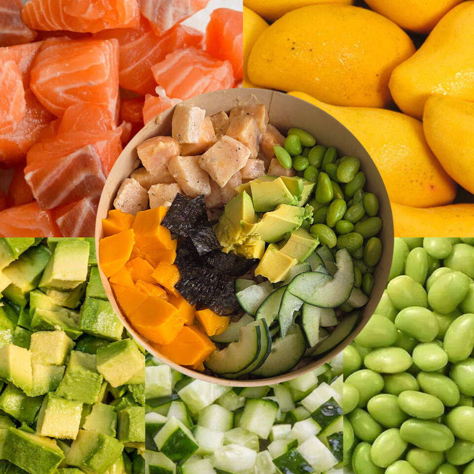 Elige: 1 base, 1 proteina, 3 toppings, 1 cruji y dos aderezos