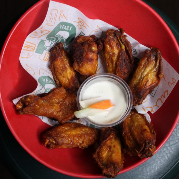 8 alitas marinadas y fritas con la receta de McCarthy's (1 sabor a elegir).