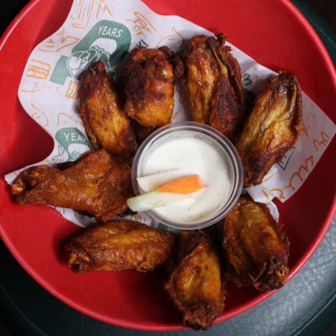 8 Alitas marinadas y fritas con la receta de McCarthy´s (1 sabor a elegir).