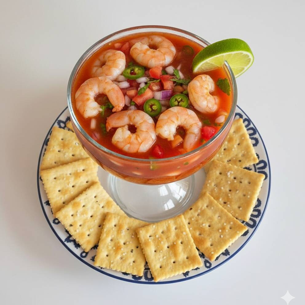 nuestro cóctel de camarón está preparado con camarones frescos y jugosos, marinados en una mezcla de salsa cátsup, jugo de limón. Se acompaña con cebolla morada, jitomate, cilantro y aguacate, logrando un balance perfecto entre frescura y sazón.