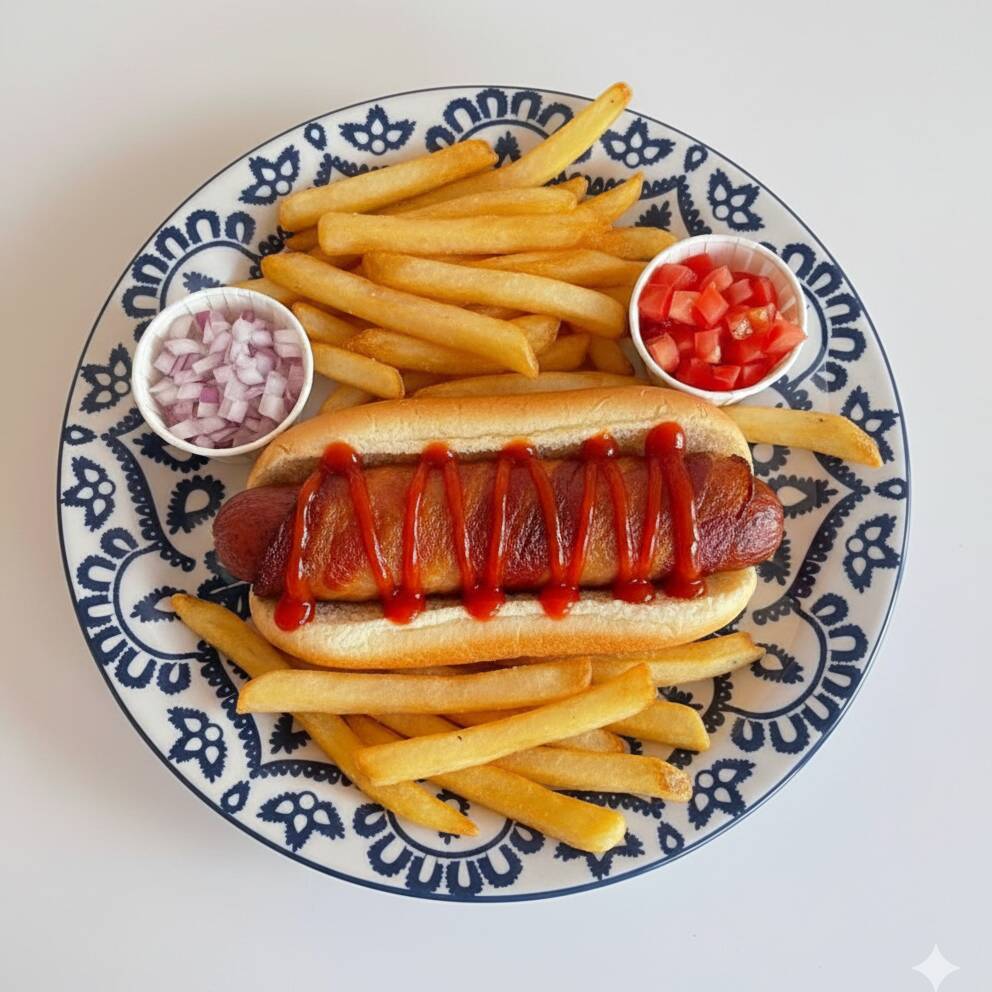 Deliciosa hot dog acompañado de papas a la francesa y refresco