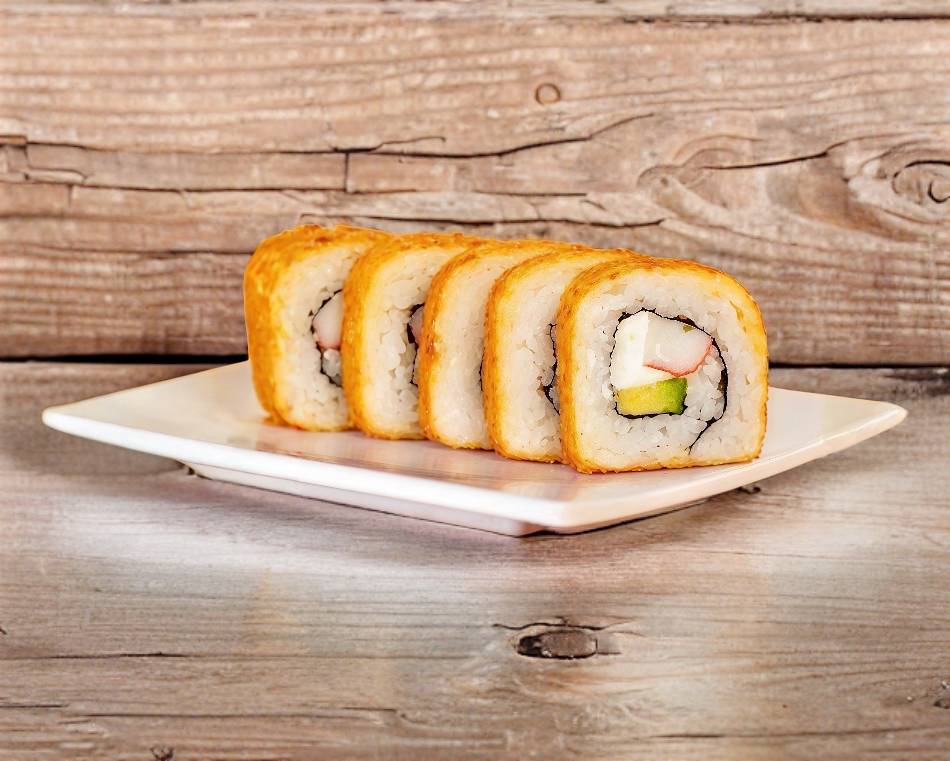 Por dentro queso crema, aguacate,Surimi, por fuera empanizado acompañado de aderezo chipotle