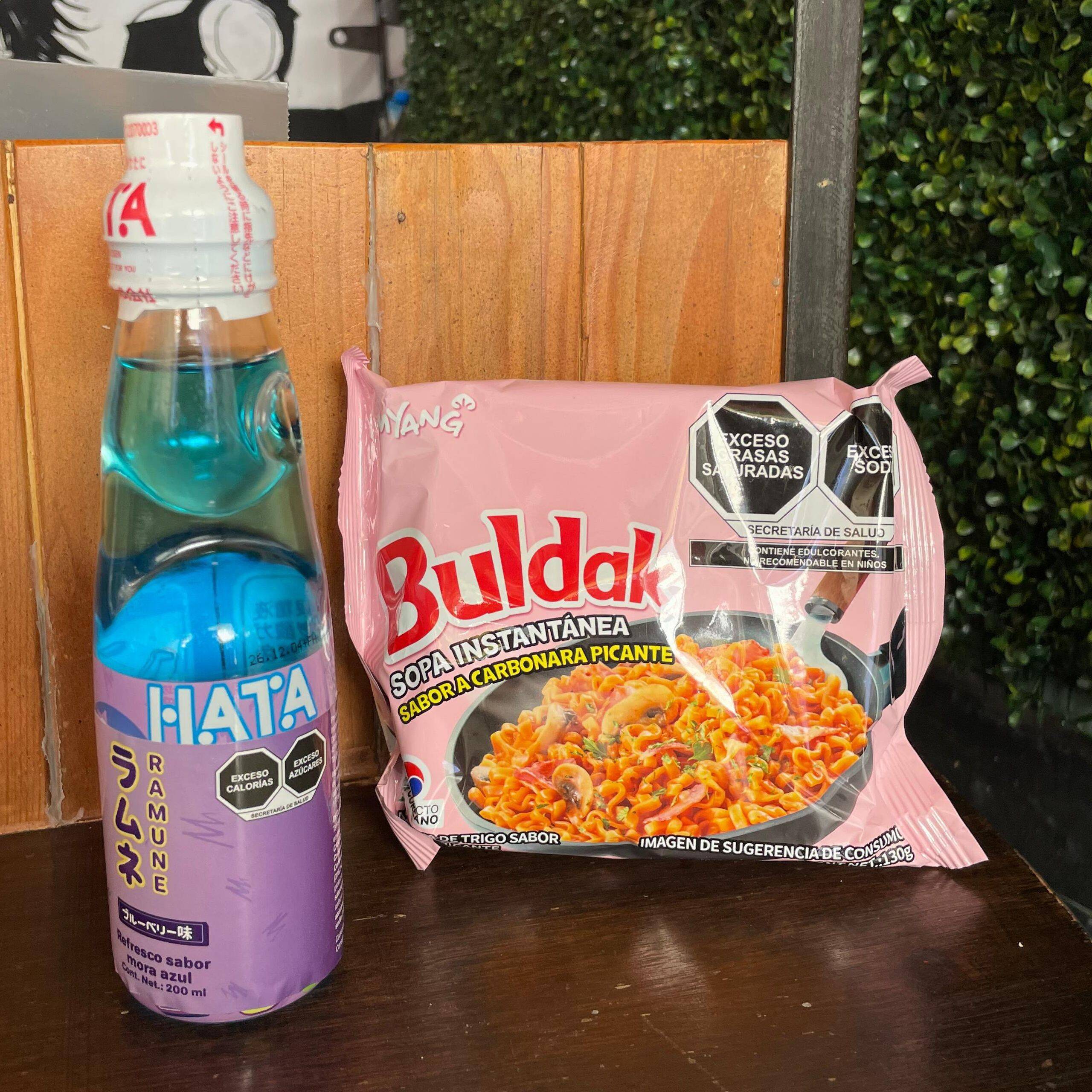 Ramen instantáneo sin preparar sabor Carbonara y 1 bebida oriental a disponibilidad del restaurante (puede variar marca y sabor)