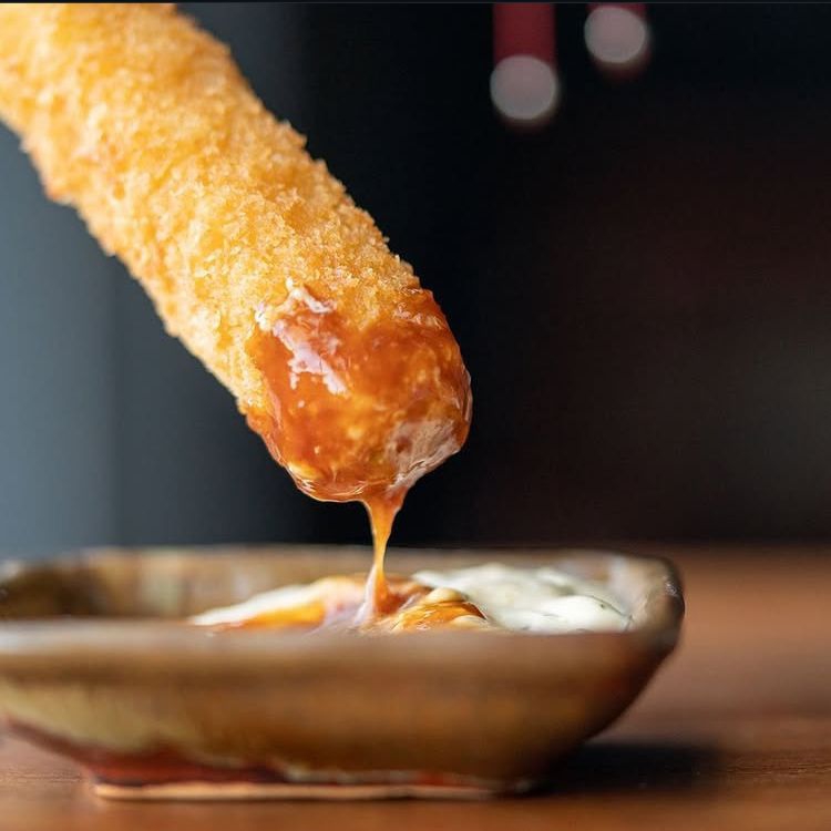 3 piezas de kushiages de queso acompañado de salsa de anguila