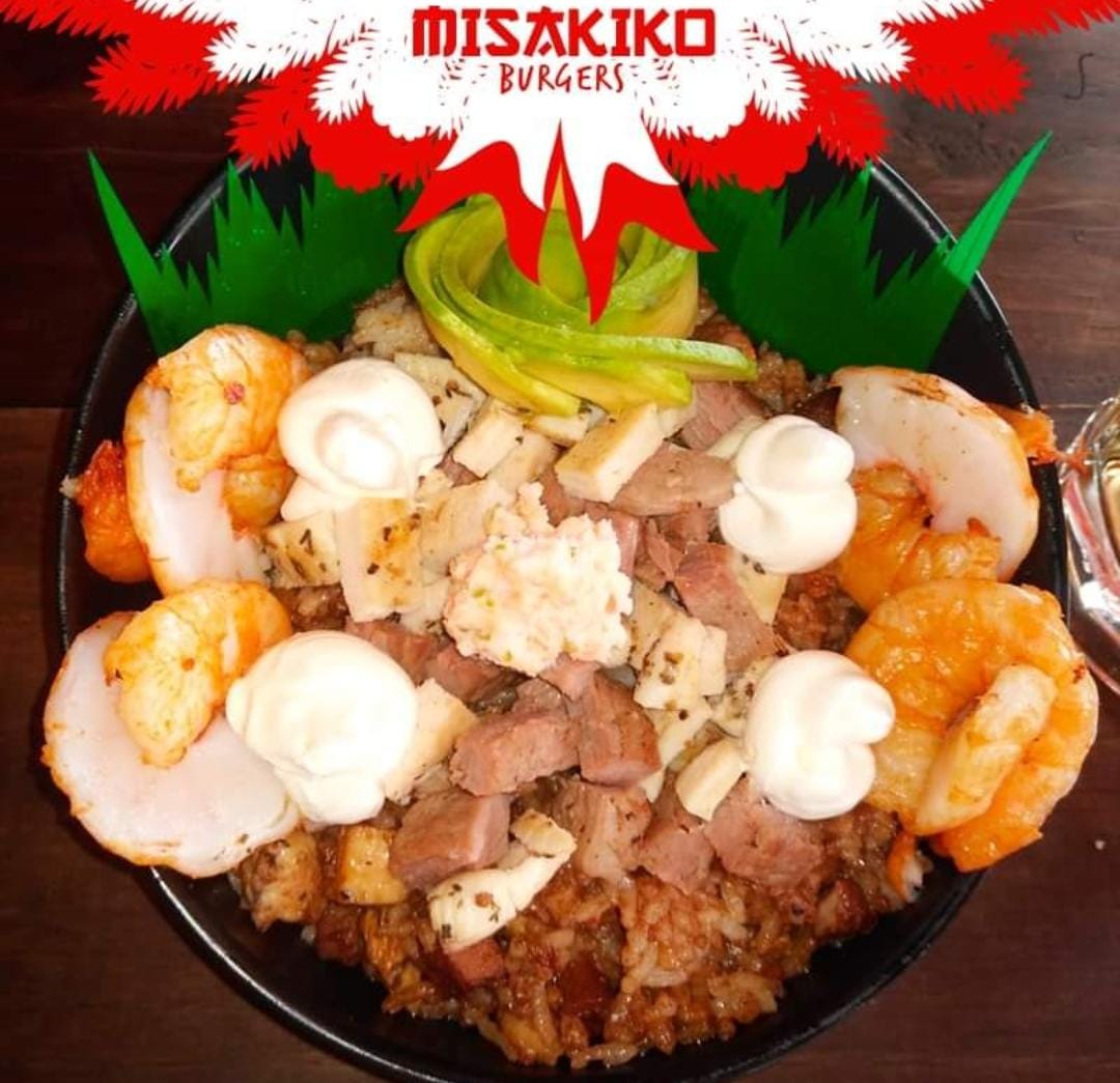 Arroz frito, acompañado de pollo, res, zanahoria y cebollín, aguacate, queso Philadelphia y salsa tampico.