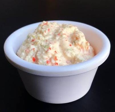 Relleno de pepino, queso Philadelphia, zanahoria, aguacate, cubierto de queso Philadelphia y camarón cocido, acompañado de salsa de anguila.
