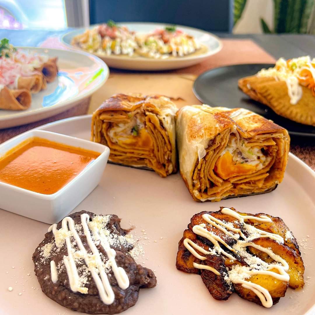 Acompañado de frijoles, plátano frito doradito, aguacate fresco y nuestras salsas verde y roja. Ideal para una persona