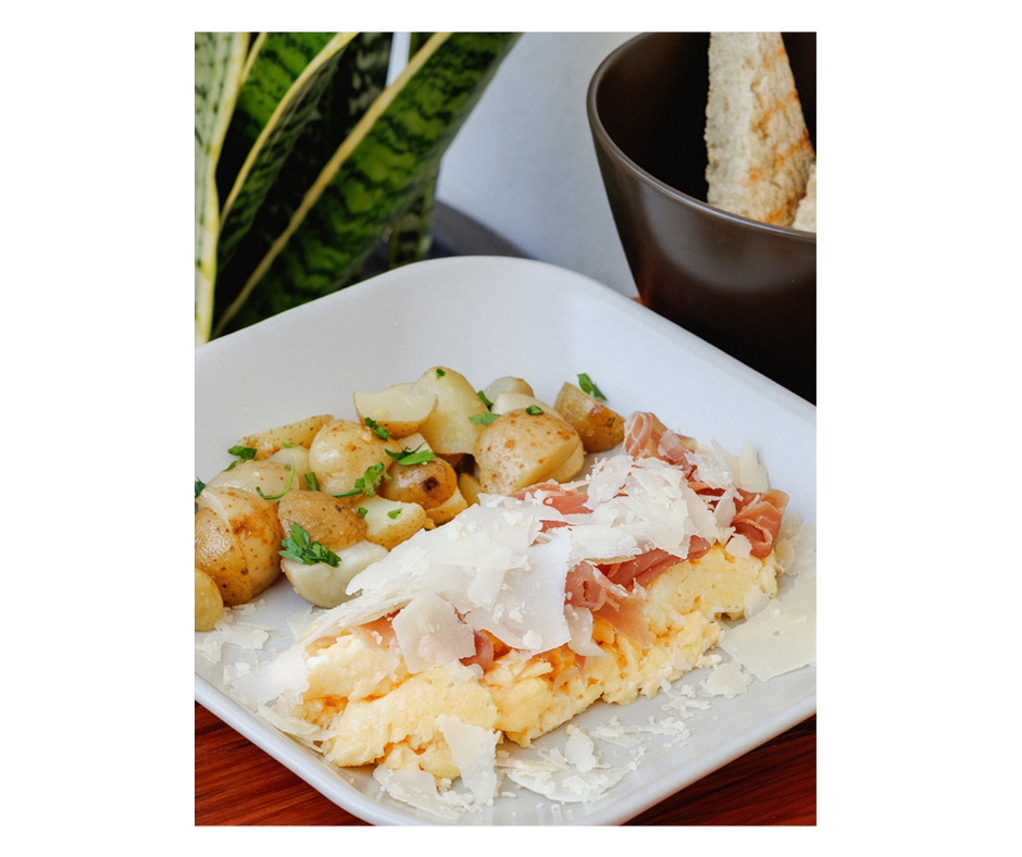 2 Huevos | Queso parmesano | Jamon Serrano | Acompañados de Papas Cambray