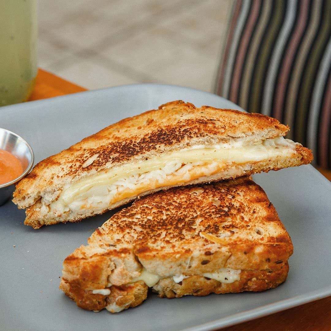 Pan Masa madre | Gouda | Queso Manchego| Queso Cheddar | Queso Mozzarella | Chipotle salsa | Papas a la francesa