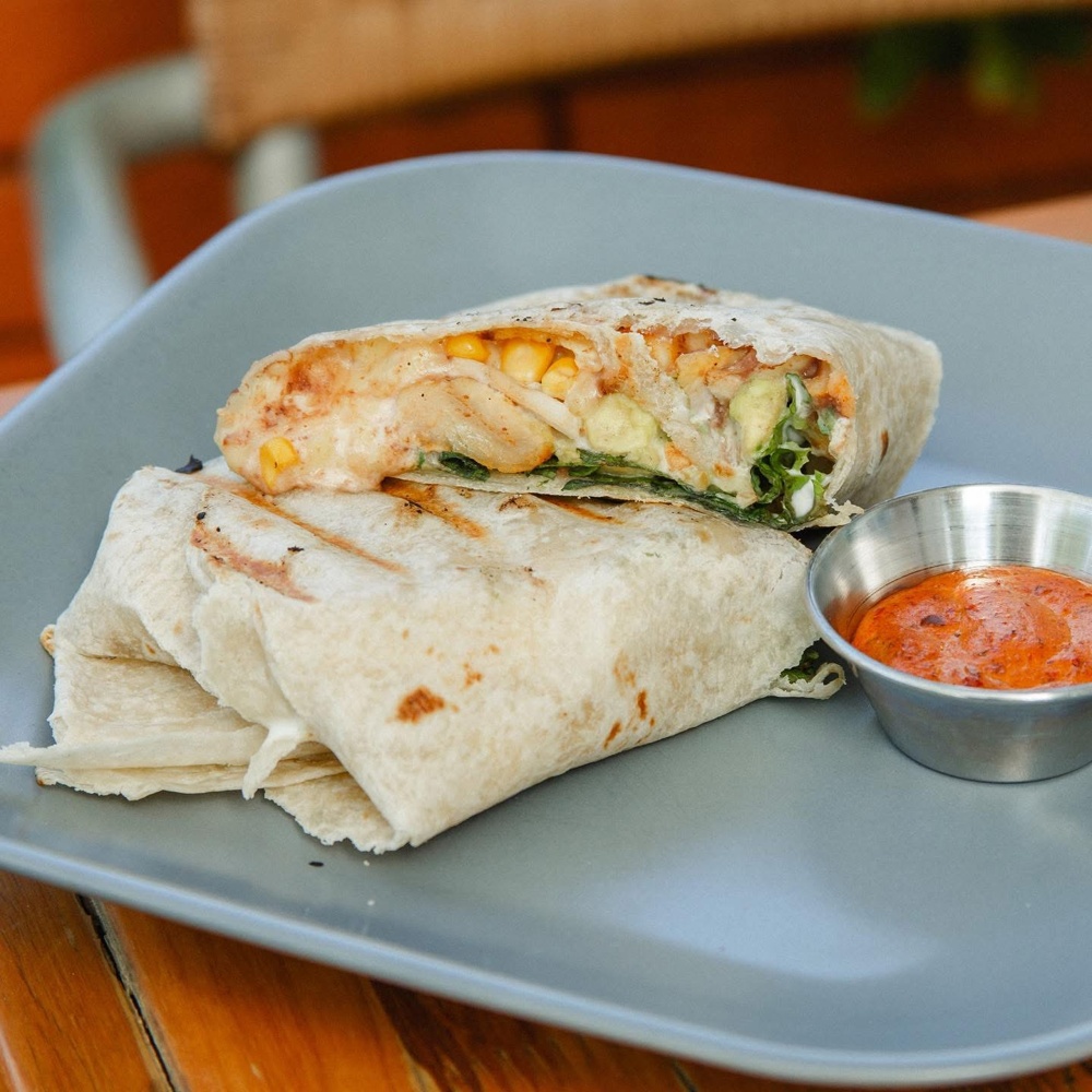 Burrito | Elote amarillo | Frijoles | Pollo a la plancha | Queso manchego | Acompañado de ensalada
