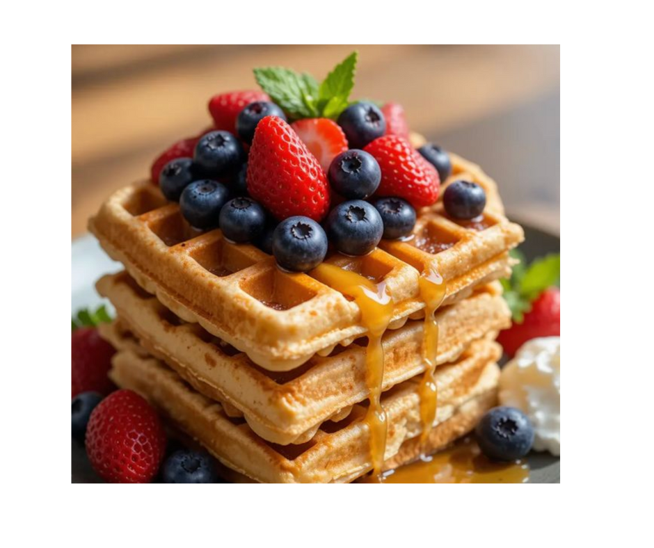 2 Waffles integrales | fresas | coco rayado | Miel de abeja |