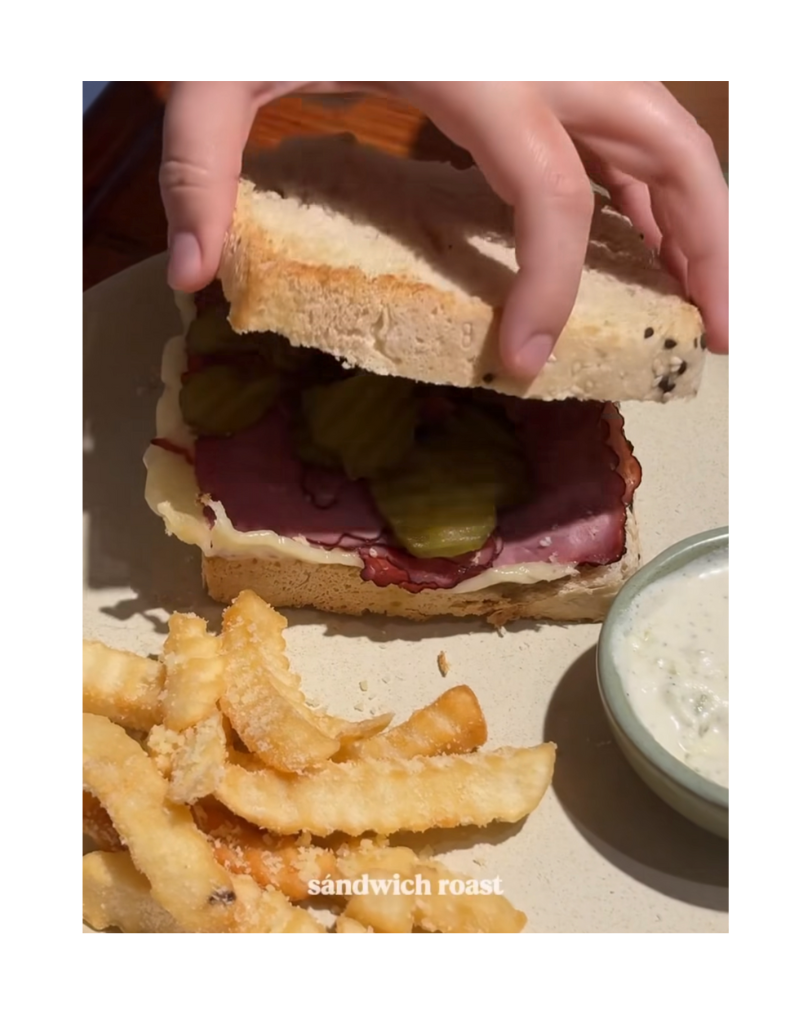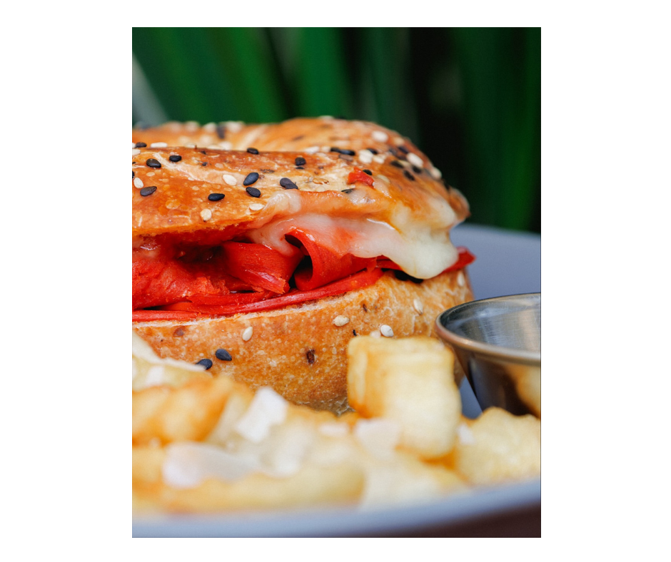 Pan Masa madre | Jamon pechuga de pavo | Pepperoni | Queso Manchego | Tocino | Acompañado de ensalada