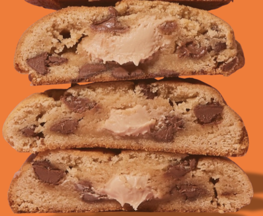 Galleta rellena de crema de cacahuate + chispas de chocolate blanco Turín