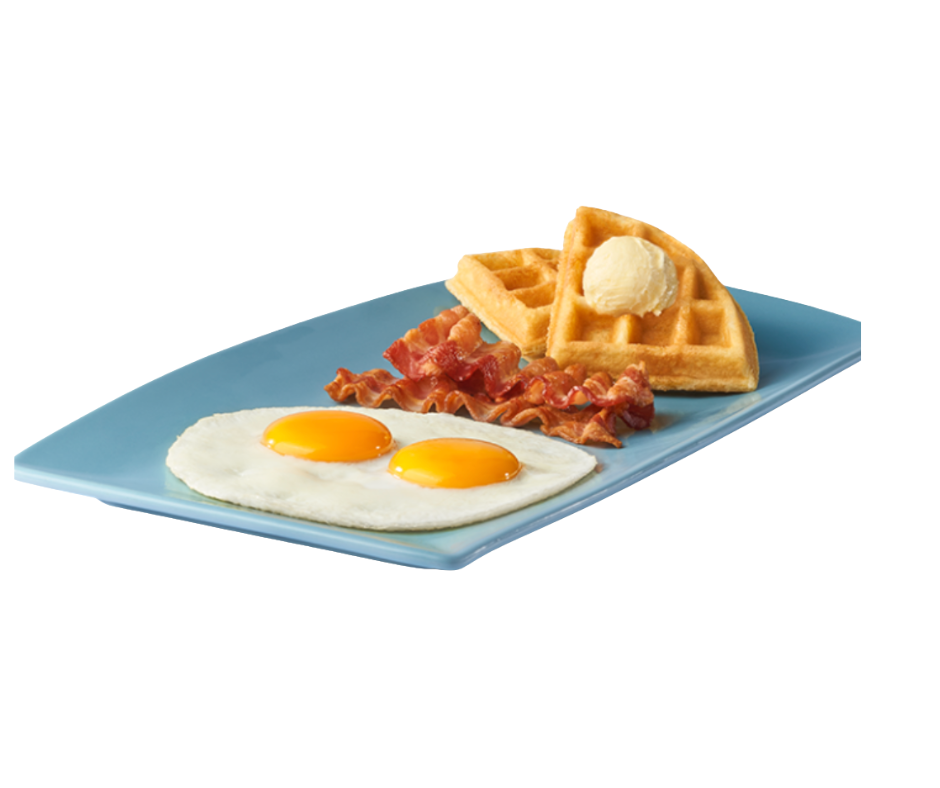 2 Waffles | 2 Huevos Estrellados | Tocino | 2 Salchichas americanas | 1 Papa Hashbrown |