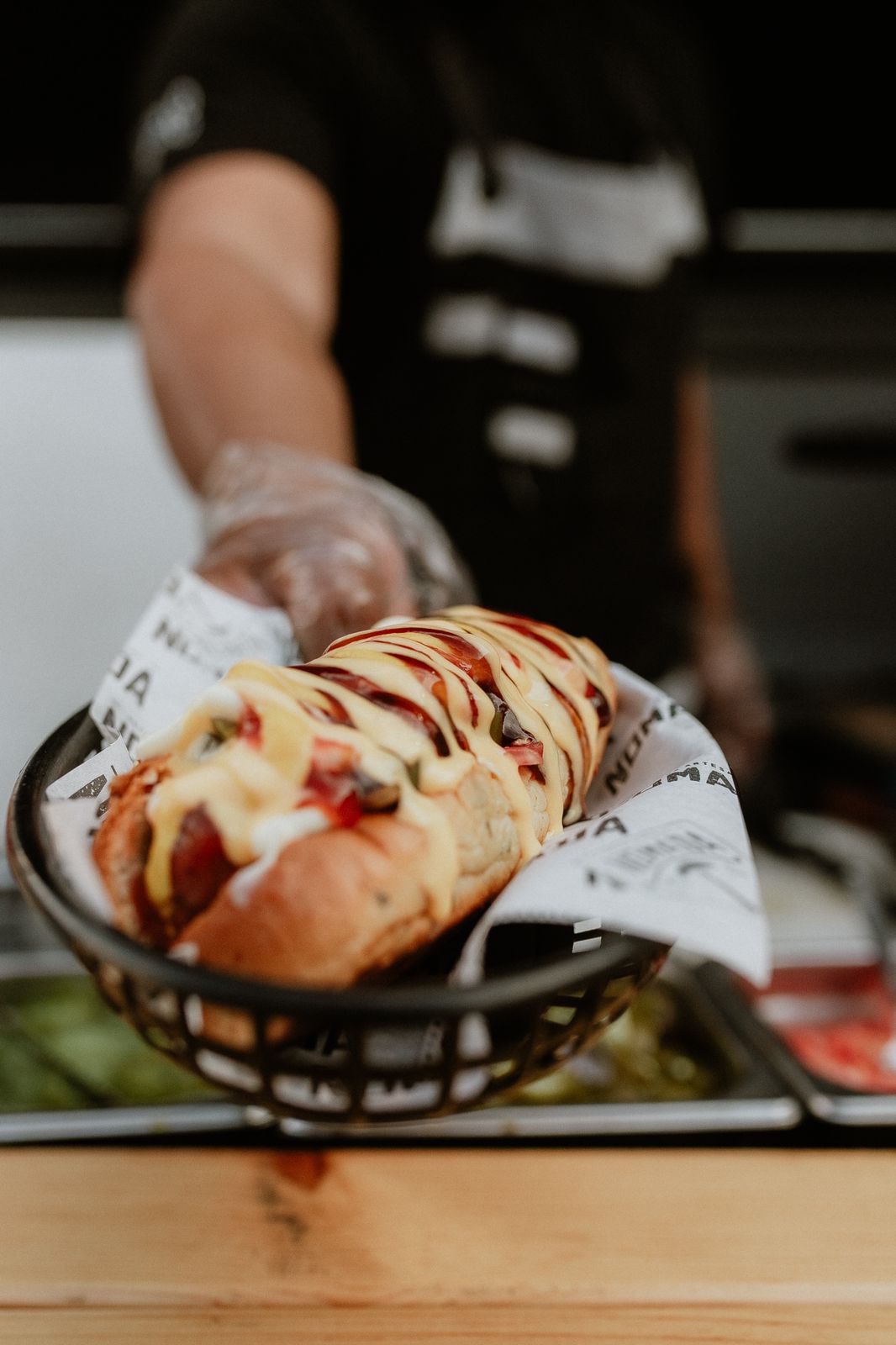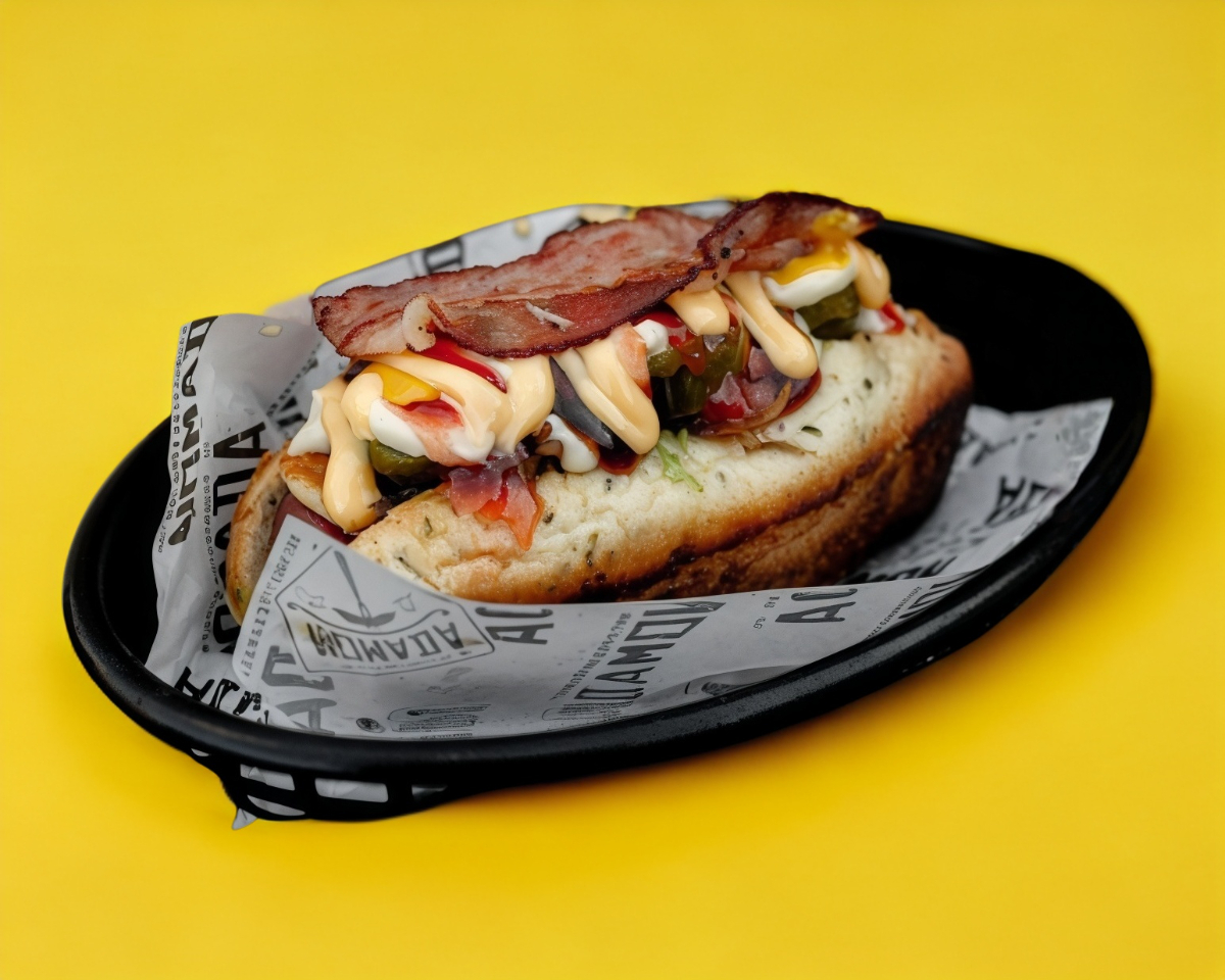 Salchicha 80% de cerdo, 20% de res rellena de queso cheddar menonita.