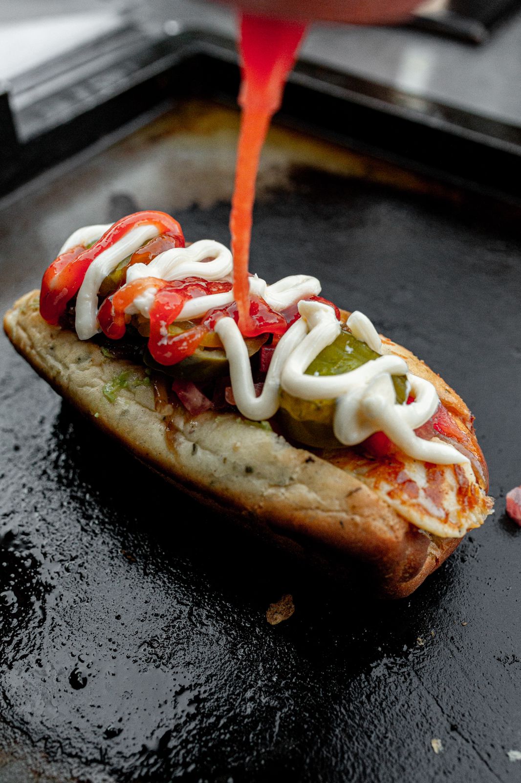 Salchicha 90% de cerdo 10% de res, servida con chimichurri.