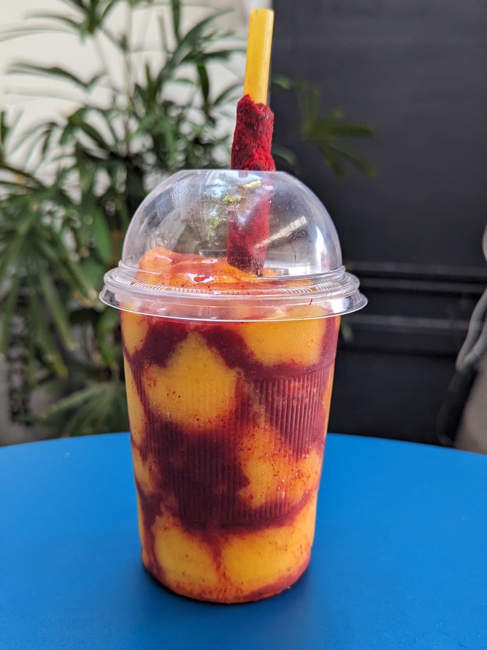 Bebida fría con chamoy y mango.