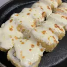 Por dentro camarón capeado, queso gouda, ques crema y por fuera empanizado y gratinado con queso Oaxaca y un toque de mayonesa especial.