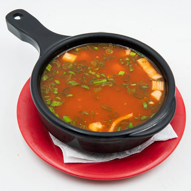 Sopa china de mariscos con vegetales y un toque de picante