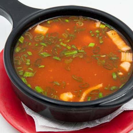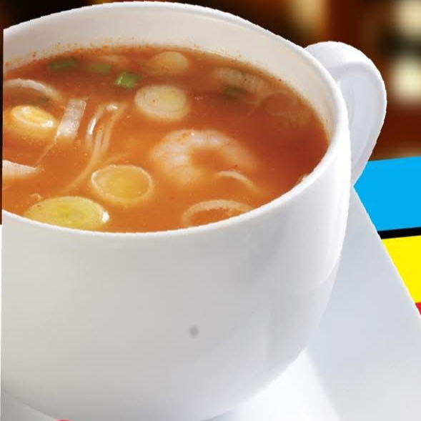 Sopa china de mariscos con vegetales y toque de picante. (TOQUE DE CEBOLLIN )