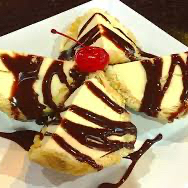Delicioso helado frito sabor vainilla, acompañado de crema batida con chocolate Hersheys.