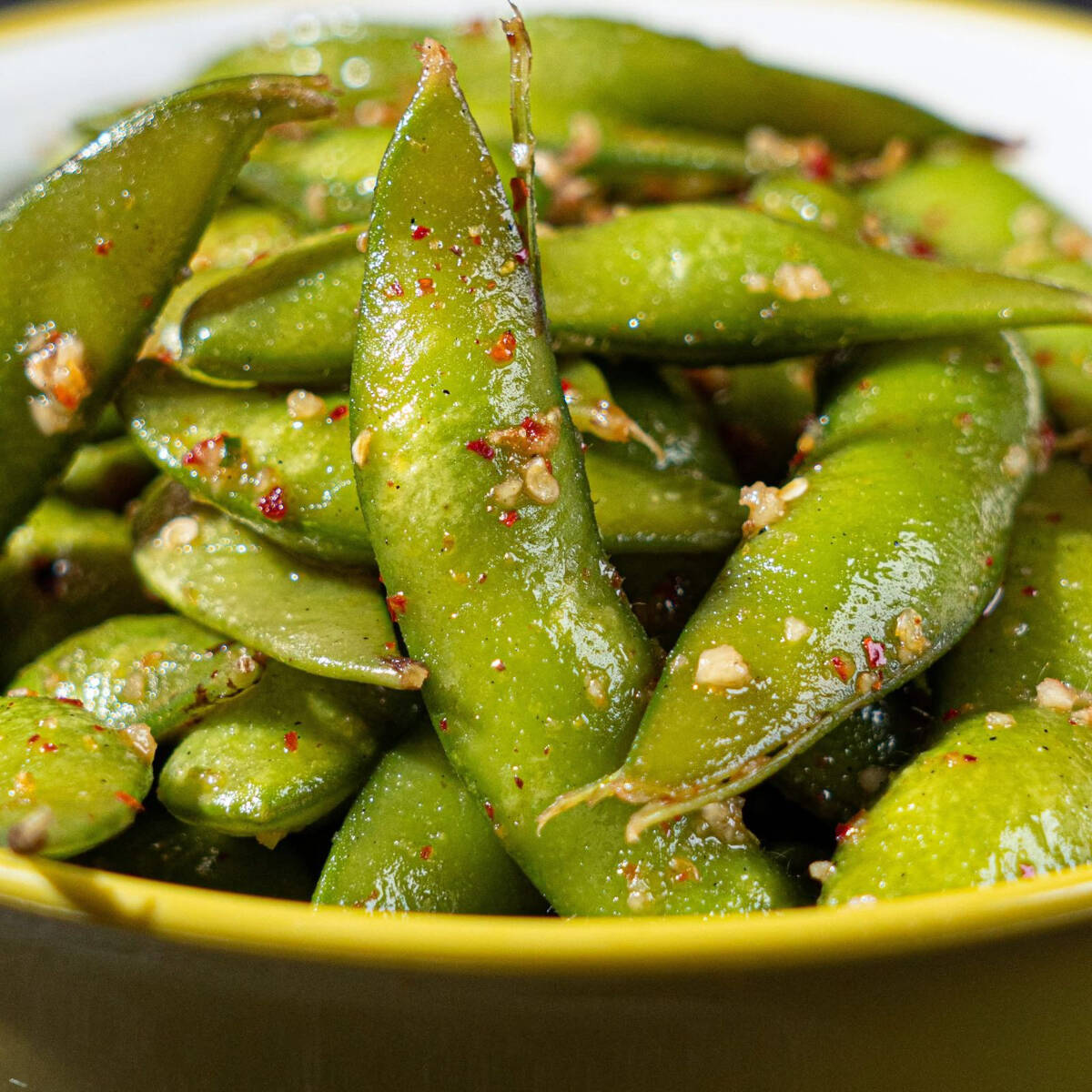 Edamames salteados con toque de picante.