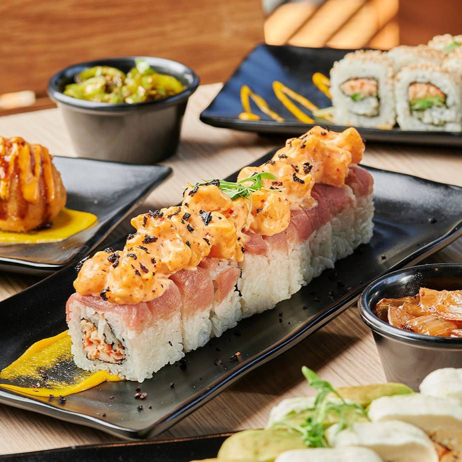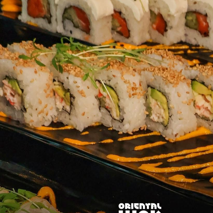 BASE DE QUESO CREMA, DELICIOSO SALMON, TAMPICO, KANIKAMA,AGUACATE, CHIPOTLE, TODO ESTO ENTRE DOS BASES DE PAN HECHAS DE ARROZ, ACOMPAÑADAS DE PAPAS ORIENTALES