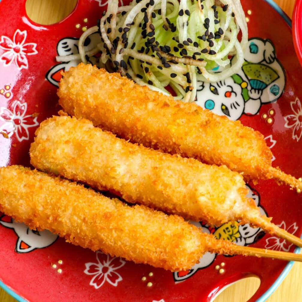 Delicioso kushiague de queso manchego con el toque especial de la casa.