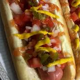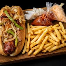 Salchicha de pavo, mayonesa, catsup, mostaza, tomate, cebolla caramelizada y salsa habanera.